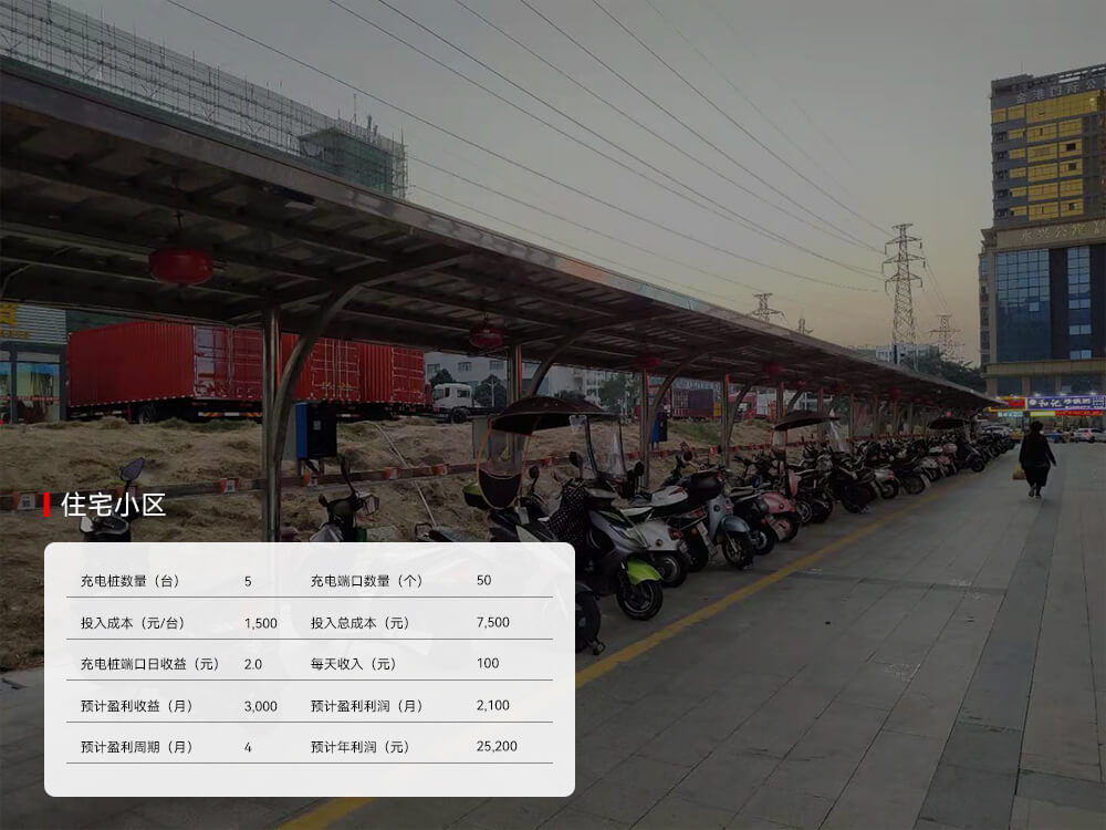 在住宅密集區(qū)域,可以建設(shè)在市政道路,為周邊用戶提供安全充電設(shè)備,及時電具備充滿電后自動斷電的功能,有效降低過度充電對電池產(chǎn)生的損害,保護(hù)電池使用壽命,為車主提供集中充電,提高了用戶充電體驗(yàn)的同時,管理難度也減小。